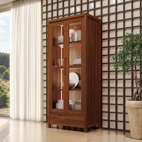 Cristaleira com vidro liso incolor para exposição de objetos