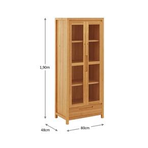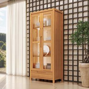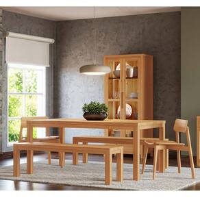 Conjunto Sala Jantar Nature: Cristaleira, Mesa, Banco e Cadeiras Rústico Claro Madeira Pinus
