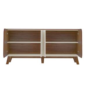 Conjunto Sala Rack c/ Painel p/ TV até 86”, Buffet Aparador 4 Portas Elegance Cedro/Off White - Artely