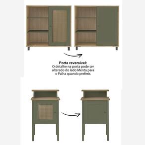 Conjunto Sala Rack p/ TV até 75”, Buffet Aparador 1 Porta, mesa centro e Apoio Carvalho/Menta Charlotte - Artely