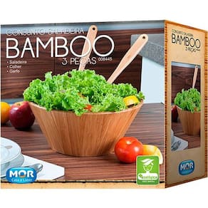O Conjunto Saladeira Bamboo vai dar o toque que faltava ao seu jantar. Composto por garfo e colher, é ideal para servir saladas como prato principal ou com acompanhamentos. Ideal para reuniões ou até mesmo festas. É a facilidade que você precisava na cozinha e para seu dia a dia. Saladeira: Ø30cm x 13cm Garfo e colher: 28,5cm x 8cm x 1,5cm