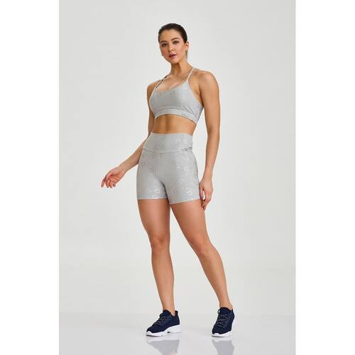 O top acompanha a proposta funcional do conjunto, com alta sustentação, perfeito para treinos de médio a alto impacto. Sua modelagem proporciona segurança e conforto, enquanto a tonalidade cinza garante versatilidade e elegância ao visual esportivo.