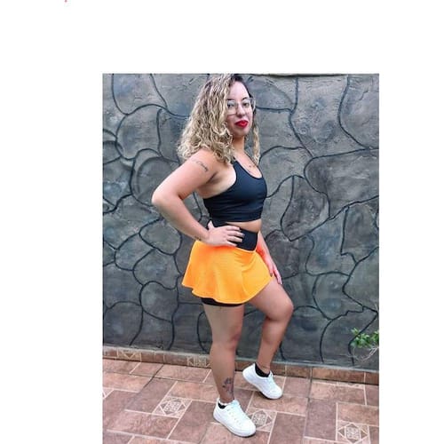 Composição do Short Saia: 90%Poliester / 10% Elastano