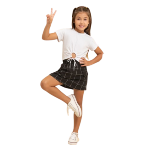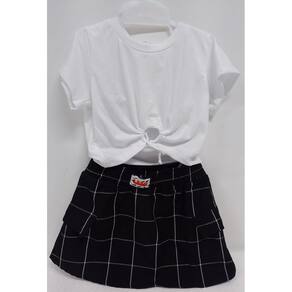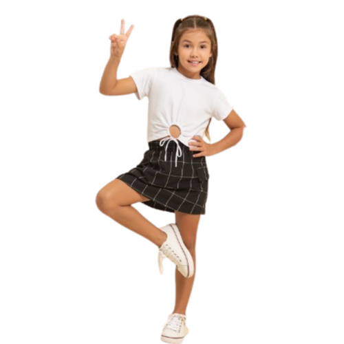 Conjunto Shorts Saia Infantil Luxo Menina Verão Lessa K149 - Preto - 10 anos