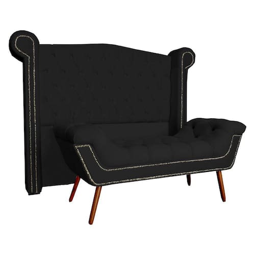Conjunto Sienna Cabeceira e Recamier Solteiro 90 Cm Corano Preto - LM DECOR