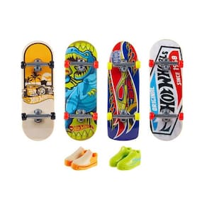 Hot Wheels Skate De Dedo Tony Hawk Conjunto Com 4 - Mattel HGT84 Faça acrobacias radicais e domine os movimentos de elite com este conjunto de skate de dedo e tênis. A Hot Wheels colaborou com a lenda do skate Tony Hawk para criar skates incríveis que são ótimos para fazer manobras em corrimãos e mandar um ollie. O conjunto inclui quatro skates diferentes, com estilos incríveis e totalmente montados, juntamente com dois pares diferentes de tênis que podem ser utilizados alternadamente com todos os skates. Os tênis ajudam as crianças a sentirem o skate e os seus movimentos à medida que dominam as acrobacias e os giros. Cada multipack inclui um skate de dedo exclusivo e um par de tênis de skate. Cada skate vem montado e conta com rodas de eixo rápido para melhor desempenho e mobilidade. Características Marca: Mattel Ref: HGT84 Idade: 5+ anos Material: Plástico, metal e borracha Dimensões: 10 x 3cm Aproximadamente Imagens Meramente Ilustrativas
