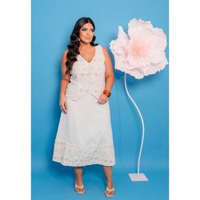 O Conjunto em Linho Bordado Plus Size é a escolha perfeita para quem busca elegância, conforto e sofisticação em uma única peça. Com design atemporal e delicado, ele une estilo e versatilidade para ocasiões especiais, eventos sociais e também para momentos de adoração e culto, sendo uma excelente opção no âmbito evangélico. O colete traz um caimento impecável, com decote em V, fechamento frontal por botões funcionais forrados e bordados exclusivos na parte frontal, que valorizam a silhueta feminina. Sua modelagem é levemente acinturada, proporcionando elegância e harmonia ao visual. A parte interna conta com forro 100% poliéster, garantindo conforto e segurança. A saia midi acompanha o conjunto e possui cós com elástico nas costas para maior conforto, zíper lateral invisível e barra bordada com detalhes sofisticados, que completam o look com delicadeza. Além disso, o forro interno oferece a cobertura ideal, mantendo discrição e bem-estar em qualquer ocasião. Confeccionado em 70% viscose e 30% linho, o conjunto possui toque leve, caimento fluido e frescor, ideal para estações mais quentes. É uma peça versátil que transita entre looks formais, sociais e evangélicos, sempre garantindo estilo e sofisticação. Especificações do Produto