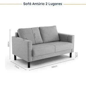 1x Sofá 2 Lugares com USB em Linho Antúrio Cinza