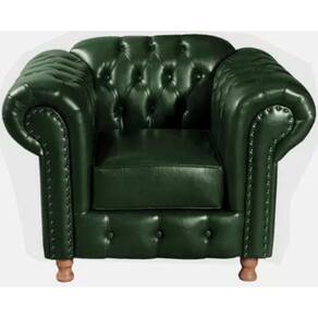 Conjunto Sofá 2 Lugares e Poltrona Chesterfield Luís XV Vintage Retrô Capitonê Couro Verde