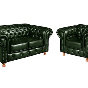 • Não nos responsabilizamos por montagem e desmontagem, transporte por escadas/elevadores/guincho. Acompanha Almofadas extras: Não Almofada do assento: Removível Almofada do encosto: Não Possui Altura do assento até o chão: 0 cm Altura do Encosto: 80 cm Ambiente Principal: Sala de Estar Complexidade da Montagem: Baixa: pode ser montado por uma pessoa sozinha Cor: Verde Cor do Produto: Verde Densidade do Assento: D-26 Enchimento do Assento: Espuma Estilo de Braço: Braços Redondos Firmeza do Assento: Macio Informações Complementares: 120Kg por acento Itens Inclusos: 1 Namoradeira 2L + 1 Poltrona LUIS XV + Pés. Linha ou Coleção: Chesterfield Material dos Pés: Madeira Eucalípto Necessita Montagem: Sim Origem do Produto: Nacional Peso: 50 kg Pet Friendly: Não Possui Percintas Elásticas: Sim Possui Pés: 04 Possui Rodízio: Não Quantidade de Itens: 2 Recomendações de Uso, Manutenção e Limpeza: Limpeza e cuidados: pode ser utilizado aspirador de pó, escova com cerdas macias ou limpeza a seco. Não utilizar produtos químicos, abrasivos ou limpeza a vapor. Evitar exposição prolongada ao sol. Sistema de Montagem: Enroscar os Pés Suporta Até (kg): 120 kg Tecido Predominante: Couro Sintético Tipo de Encosto: Fixo Tipo de Mola: Molas Ensacadas (Molas ensacadas)