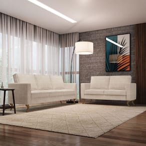 Conjunto Sofá 3 E 2 Lugares Caprice Cpe018 Casa De Pedras Estofados Bege / Branco