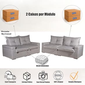 O Conjunto de Sofás Tera Bom Pastor 3x2 Lugares é perfeito para quem busca unir conforto, sofisticação e praticidade na sala de estar. Com medidas de 2,25 m no sofá de 3 lugares e 1,90 m no sofá de 2 lugares, ambos com 1,00 m de altura e 98 cm de profundidade, oferecem espaço ideal para acomodar a família com comodidade. Seu design moderno conta com encosto reclinável e molas ensacadas, garantindo maciez e sustentação em cada assento. Produzido com materiais de qualidade e direto da fábrica, é a escolha ideal para transformar o ambiente com elegância e durabilidade. Direto da fábrica, o sofá é enviado na caixa, o que facilita o transporte, torna a entrega mais prática e é de montagem simples.