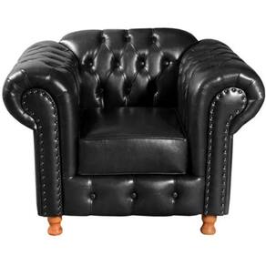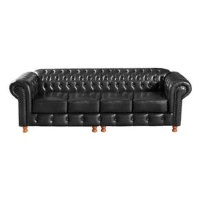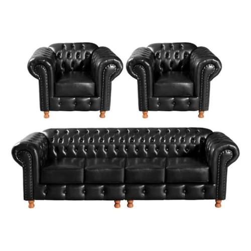 Conjunto Sofá 4 Lugares e 2 Poltrona Chesterfield Luís XV Vintage Retrô Capitonê Couro Preto