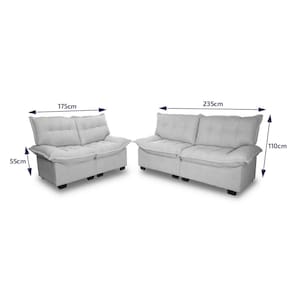 - Comprimento: Sofá 3 lugares 2,35m e Sofá 2 lugares 1,75m.