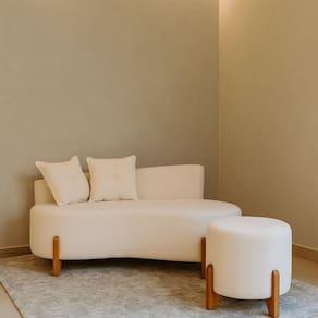 Conjunto Sofá Curvo Orgânico + 01 Puff Luna Boucle Branco - Montanaris Decor