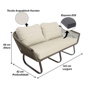 Dimensoes Namoradeira Milao: Altura total: 69 cm Altura do assento ao chao: 44 cm Largura total: 143 cm Largura do assento: 117 cm Profundidade: 82 cm Suporta ate 300 kg