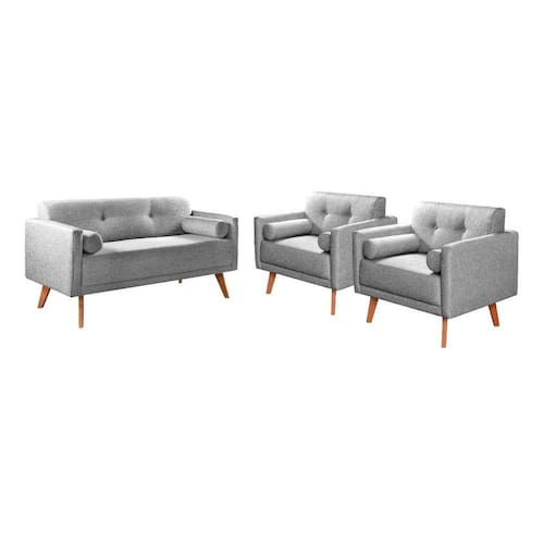 Itens inclusos: Namoradeira Luma e 2 Poltronas (no tecido escolhido) 6 Almofadas (rolinhos) >> Soltos Pés de Madeira Kit de parafusos É aconselhável uso de PARAFUSADEIRA PARA A MONTAGEM DOS PÉS - ( Parafusos já inclusos)