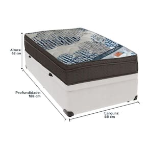 Colchão: Modelo: ISO Superpocket; Marca: Ortobom; Tamanho: Solteiro; Dimensões: 88x188x18cm; (largura x comprimento x altura) Conforto: Espuma D26 e Pillow Euro; Proteções: Antiácaro, antialérgico, antifungo, antimofo; Possui: Sistema No Turn; Peso máximo recomendado: até 100Kg (por pessoa); Garantia: 03 meses;