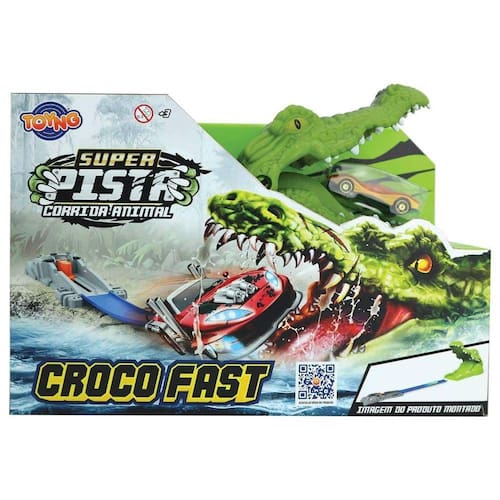 Conjunto Super Pista - Corrida Animal - Croco Fast - Crocodilo - Toyng: enfrente animais ferozes nos desafios de aventura, ação e velocidade com os conjuntos, brinquedos e veículos da coleção Super Pista Corrida Animal Toyng. Com este emocionante conjunto de lançador e pista resta, as crianças são desafiadas a enfrentar o obstáculo com um poderoso Crocodilo - que está pronto para tentar estragar a diversão. Para brincar é fácil. Basta inserir o carrinho no super lançador e disparar para tentar passar ileso pelo terrível Crocodilo com presas afiadas. Será que o Crocodilo vai vencer? Desafie e vença essa corrida. INFORMAÇÕES: • Produto: Super Pista Corrida Animal Crocodilo Fast • Marca: Toyng Brinquedos • Coleção: Super Pista Corrida Animal • Tipo: Conjunto com Pista e Lançador • Conteúdo: 1 Poderoso Lançador, 1 Pista, 1 Obstáculo de Crocodilo e 1 Carrinho • Recomendação: para crianças a partir de 3 anos de idade ESPECIFICAÇÕES: • Referência: 43350 • Embalagem (C x A x L): 30 x 20 x 9.5 cm • Embalagem (Peso): 0.350 kg • Composição / Material: Plástico • Registro: CE-BRI/INNAC-0163-000 • Certificado: Órgãos Autorizados - OCP´S (Organismos de Certificação de Produtos) BENEFÍCIOS DE BRINCAR: - Eleva a autoestima - Estimula o raciocínio - Exercita o imaginário - Desenvolve a criatividade - Promove a socialização e interação - Desenvolvimento neuropsicológico - Estimula habilidades motoras básicas - Incentiva a comunicação e linguagem - Desenvolve aspectos emocionais e afetivos AVISO: - As imagens são meramente ilustrativas - Os tamanhos e medidas são aproximados - As cores e estampas dos produtos podem ter variações - As informações são de responsabilidade do fabricante ou fornecedor Ean: 7899871614095