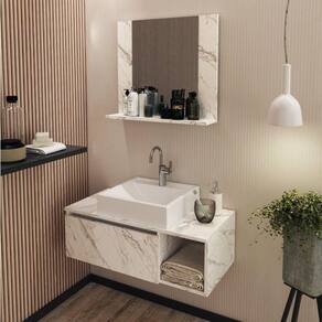 Imagem meramente ilustrativa. A decoração do ambiente não acompanha o produto. Produto, acompanha nota. O produto será entregue desmontado. Altura do Conjunto: 54 cm Ambiente: null Ambiente Principal: Banheiro Cor: Branco Informação Complementar: 1x Gabinete Suspenso para Banheiro 80cm 1 Porta Basculante 1 Nicho BN3601 Mármore Branco Largura: 80 Altura: 26.5 Peso: 10.8 Profundidade: 38.7 Necessita Montagem: Sim