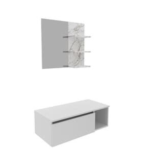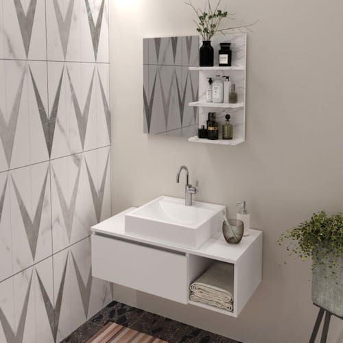 Quando falamos de banheiro pensamos em bem-estar. Pois o banheiro é onde a gente recarrega nossa energia vital, idealiza sonhos, e realiza toda a manutenção necessária para uma saúde física e mental. Com design prático, o móvel entrega ao ambiente toques de modernidade e elegância. Funcional, acondiciona produtos de higiene e beleza, porta escova, papel higiênico, toalhas, artigos de limpeza, entre tantos outros objetos pessoais. Balcão Gabinete Suspenso para Banheiro BN3601. Possui porta articulável e um nicho lateral. Estrutura em MDP e acabamento em pintura UV. Não acompanha cuba. Imagem meramente ilustrativa. A decoração do ambiente não acompanha o produto. Produto, acompanha nota. O produto será entregue desmontado. Altura do Conjunto: 54 cm Ambiente: null Ambiente Principal: Banheiro Cor: Branco Informação Complementar: 1x Gabinete Suspenso para Banheiro 80cm 1 Porta Basculante 1 Nicho BN3601 BrancoLargura: 80Altura: 26.5Peso: 10.8Profundidade: 38.7Necessita Montagem: Sim1x Espelheira para Banheiro 3 Prateleiras BN3608 Mármore BrancoLargura: 60Altura: 54Peso: 6.2Profundidade: 15.6Necessita Montagem: Sim Material Principal: MDP