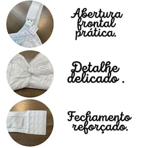 Características: Material: Confeccionado em tecido macio e respirável, ideal para a pele sensível do pós-parto.Detalhes em Renda Delicada: Design elegante com renda fina, trazendo um toque de feminilidade e charme.Sutiã de Amamentação: Reforço e Sustentação: Alças largas e estrutura reforçada para maior suporte.Abertura Fácil: Sistema de abertura prática que facilita a amamentação em qualquer momento.Ajuste Confortável: Alças ajustáveis para garantir o ajuste perfeito. Calcinha Pós-Parto: Conforto e Suporte: Modelagem que se ajusta suavemente ao corpo, oferecendo suporte sem apertar.Cintura Alta: Ideal para ajudar na recuperação pós-parto e proporcionar mais segurança e conforto. Tamanhos: Disponíveis em diversos tamanhos para atender todas as mamães. Benefícios: Conforto Total: Projetado para oferecer o máximo de conforto durante o período pós-parto e de amamentação.Estilo e Funcionalidade: Combina elegância com a funcionalidade necessária para o pós-parto e amamentação.Durabilidade: Feito com materiais resistentes que mantêm a qualidade e a forma após várias lavagens.Praticidade: Facilita o momento da amamentação, proporcionando praticidade no dia a dia.Não perca a oportunidade de adquirir este Conjunto Pós-Parto de Sutiã de Amamentação e Calcinha Branco com Renda Delicada! Ofereça a si mesma o conforto e a elegância que você merece durante essa fase especial.