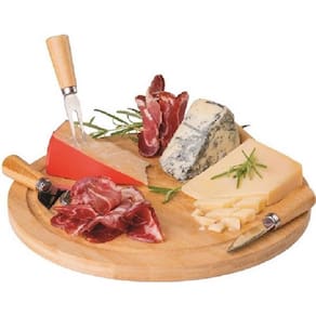 Tábua com talheres para queijo. Sensacional e lindo conjunto. Feita em bambu prensado. Ecologicamente correto. Muito mais leve que outros tipos de madeira. É antibacteriana. Contem 1 tábua e 4 talheres. Medida de 30x30x1,5cm. Os talheres medem 12cm. Você causará inveja nos seus amigos/familiares ao utilizar este conjunto tomando seu vinho. Você não pode ficar sem essa peça.