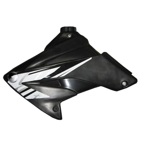 Anuncio referente a tanque + aletas. Modifique o visual da sua DT 180 com praticidade e segurança. Estética do tanque baseada na moto DT 180 e aletas no estilo trilha incrementam o visual das DT's 180. Este conjunto Tanque + Aletas , trás á sua DT 180 um visual atualizado, aerodinâmico, resistente e seguro. Tanque: Preto Par de Aletas: Preto Peso líquido do tanque: 2,5kg vazio . Capacidade do tanque: 11 litros. Produzidos em termoplástico de alta resistência com pigmentos à prova de raios UV ultravioleta . Obs: Cores e modelos dos adesivos podem variar conforme disponibilidade. Os adesivos que acompanham os produtos compõe a embalagem dos mesmos e tem pouca durabilidade.