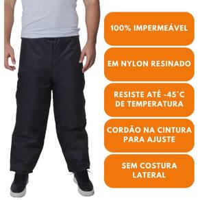 A Calça frigorífica para ambientes resfriados Nylon Manta 150, confeccionada em tecido nylon 330 resistente, possui forro interno em manta acrílica de matelassê e uma camada térmica em poliéster, garantindo excelente isolamento térmico.