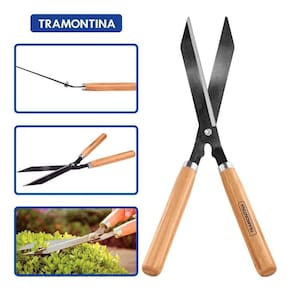 - A tesoura de cerca viva possui cabo de madeira de origem renovável, com acabamento envernizado, para um melhor acabamento e apresentação do produto. A camada protetora em verniz incolor realça sua tonalidade, concedendo brilho e um toque mais liso ao produto.