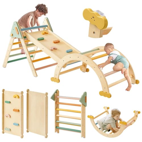 Segurança e Estilo em um só Produto! Este conjunto de escalada Montessori foi projetado com foco em segurança e estética, incluindo um estável pikler triangle combinado com uma rampa reversível e um balanço antitombamento. Almofadas de silicone antiderrapantes e designs reforçados garantem uma diversão segura para os pequenos. Com esta estrutura, os pais podem relaxar enquanto as crianças desfrutam de brincadeiras internas seguras e estimulantes. Estabilidade Reforçada em Cada Detalhe! Desde almofadas de silicone até blocos de canto robustos, este conjunto de pikler triangle é projetado para permanecer estável, mesmo durante as sessões de escalada mais enérgicas. Seja balançando ou escorregando, as crianças desfrutam de uma experiência de brincadeira segura e estável que desenvolve confiança e coordenação. Conjunto 7 em 1 para Aventuras Infinitas! Mais do que apenas um pikler triangle, este brinquedo de escalada para crianças inclui sete maneiras de brincar: escorregar, escalar, balançar, rastejar, equilibrar, esconder e explorar. Mantém mentes curiosas e corpos ativos totalmente envolvidos, perfeito para o desenvolvimento infantil no estilo Montessori. Dobrável e Fácil de Armazenar! Ideal para famílias modernas, este conjunto de pikler triangle Montessori pode ser dobrado e armazenado facilmente. Uma solução minimalista para aqueles que buscam diversão e funcionalidade sem bagunça. Feito para Exploradores em Crescimento! Fabricado em madeira durável e segura para crianças, este conjunto de escalada pikler triangle suporta até 160 libras (72 kg), sendo ideal para crianças pequenas até as mais crescidas enfrentarem novos desafios. Projetado para durar em cada estágio de desenvolvimento, de 1 a 10 anos. Um Presente Atencioso em Cores Deslumbrantes! Seja nas cores suaves de Morandi ou nos tons alegres do arco-íris, este conjunto estiloso de escalada Montessori é um presente memorável para aniversários, feriados ou qualquer sala de brincar inspirada na metodologia Montessori. Função encontra beleza neste item essencial para pais responsáveis.