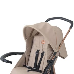 Carrinho Lui: Capota regulável e removível Cinto de segurança de 5 pontos Protetor frontal removível Rodas dianteiras giratórias Freio traseiro conjugado Cesto porta-objeto Encosto reclinável em 4 posições Trava para fechamento