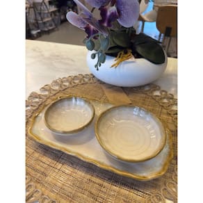 Versatilidade: com travessa + bowls, dá para usar tanto para servir como para compor mesa: travessa para aperitivos ou entrada, bowls para molhos, dips ou acompanhamentos.