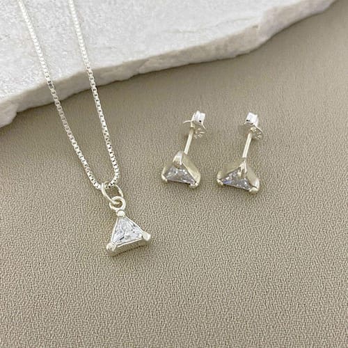 Conjunto Triangulo Ponto de Luz em Prata 925