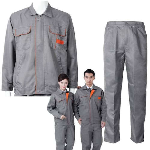 Jaqueta de trabalho de manga comprida, gola, fecho com zíper e botão de pressão, fácil de colocar e tirar.