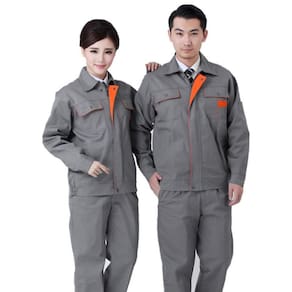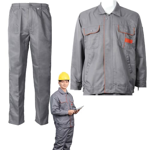 Jaqueta de trabalho de manga comprida, gola, fecho com zíper e botão de pressão, fácil de colocar e tirar.