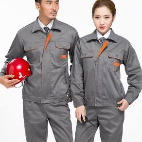 Jaqueta de trabalho de manga comprida, gola, fecho com zíper e botão de pressão, fácil de colocar e tirar.