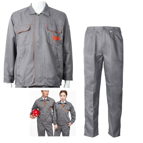 Jaqueta de trabalho de manga comprida, gola, fecho com zíper e botão de pressão, fácil de colocar e tirar.