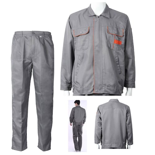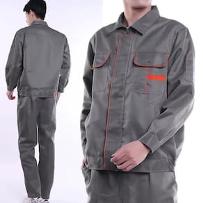 Jaqueta de trabalho de manga comprida, gola, fecho com zíper e botão de pressão, fácil de colocar e tirar.