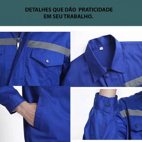Indicado para trabalhos pesados que exijam durabilidade, resistência e excelente qualidade. Possui faixas refletivas na altura do peito e nas costas. É considerado como um item fundamental na segurança dos profissionais ou prestadores de serviços. Possui bolsos na altura do peito e um compartimento para canetas na lateral do braço esquerdo.