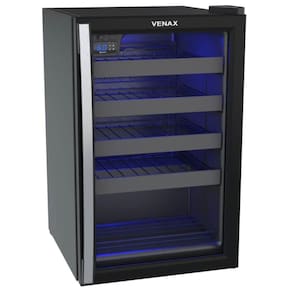 CARACTERÍSTICAS DA EXPOSITORA CHAMPANHEIRA PORTA INVERTIDA 100L PRETO FOSCO - Controlador de Temperatura: Digital. Regulável(-2C a 8C) - Iluminação Interna: LED Azul - Porta: Vidro Duplo - Aquecimento da Porta: Sim - Puxador da Porta: Alumínio - Abertura da Porta: Da Esquerda para Direita - Para Esquerda(Opcional) - Trava de Abastecimento: Não - Degelo: Automático - Dreno: Traseiro - Recipiente de Degelo: Sim - Prateleiras: 4 Deslizantes e 1 Fixa - Evaporador: Sem Ar Forçado - Sistema de Refrigeração: Compressor - Gás Refrigerante: R134a - Pés: Frontais Reguláveis e Traseiros com Rolete - Gabinete Interno: PSAI - Gabinete Externo: Aço Revestido com Pintura Eletrostática Testeira: Não Capacidade de Armazenamento: 24 Garrafas / Máx.90mm.