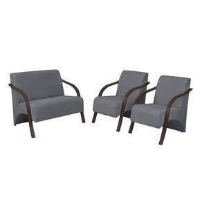Conjunto Poltronas Decorativas Vênus Braço Madeira kit 3 peças.