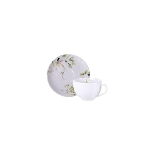 Fabricado em Porcelana Coleção: Magnolia Porosidade próxima de zero, evitando a proliferação de fungos e bactérias Volume da xícara: 250 ml Composto por: 02 peças Serviço: 1 pessoa