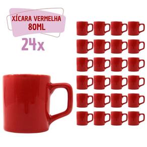 Conjunto Xícaras Café Cerâmica Vermelha Vibrante 80mL - 24un