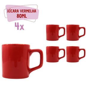Conjunto Xícaras Café Cerâmica Vermelha Vibrante 80mL - 4un