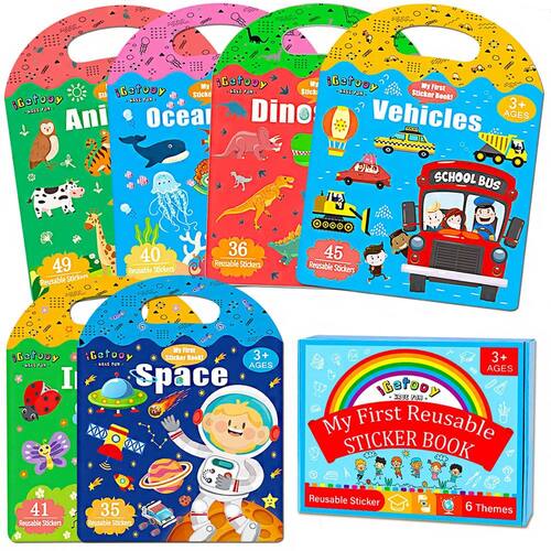 Livros adesivos reutilizáveis iGetooy para crianças de 2 a 4 anos 1. Essencial para viagens infantis - é muito adequado para viagens infantis, como no carro, no trem e no avião, para manter seus filhos ocupados e torná-los mais agradáveis na viagem. 2. O livro de adesivos para crianças vem com uma alça portátil e um local para guardar adesivos, que podem ser utilizados em qualquer lugar, a qualquer hora. Os adesivos para crianças podem ser utilizados não apenas em livros de adesivos, mas também em todos os tipos de superfícies lisas, como janelas, espelhos, garrafas de água e geladeiras. 3. Os livros de adesivos reutilizáveis são presentes ideais para crianças, adolescentes, meninas e adultos. Em festivais específicos, presentes de aniversário, presentes de Dia dos Namorados, presentes de Halloween, presentes de Natal, presentes de Dia das Crianças. - 6 conjuntos de livros de adesivos reutilizáveis: inclui veículos, espaço, mundo oceânico, animais, dinossauros e insetos. 246 adesivos reutilizáveis para crianças de 2 a 4 anos. O adesivo pode ser colado em qualquer posição neste livro e em todos os tipos de superfícies lisas sem deixar resíduos, como janelas, espelhos, garrafas de água e geladeiras. - Portátil e durável - O livro de adesivos vem com uma bolsa de transporte que é fácil de transportar quando você sai ou viaja, pode armazenar bem os adesivos sem cair. Pode ser utilizado em qualquer lugar, a qualquer hora. Mesmo que os adesivos de gelatina caiam no chão e fiquem sujos, enxágue com água e você poderá reutilizá-lo. - Essencial para viagens infantis - é muito adequado para viagens infantis, como no carro, no trem e no avião, para manter seus filhos ocupados e torná-los mais agradáveis na viagem. - Livro de atividades infantis - Um jogo de atividades incrível para passeios de carro, avião, ou em qualquer lugar como uma igreja, restaurante, parque, geladeira, paredes, salas de aula, creche, quartos, salas de jogos e muito mais! Perfeito para brinquedos de viagem para crianças para manter seus filhos ocupados. - Ótimo presente para crianças - Perfeito para escola em casa, pré-escola, jardim de infância ou trabalho complementar. Oferece uma experiência de aprendizagem divertida e interativa para os primeiros alunos. Ideias de presente perfeitas para crianças no aniversário, Natal, ano novo, etc. - Brinquedos de aprendizagem de educação pré-escolar - Este livro de adesivos gelatinosos pode desenvolver as habilidades motoras finas da criança, coordenação óculo-manual e melhorar a concentração. Pode ajudar as crianças a aprender palavras e reconhecer as coisas facilmente através da brincadeira.