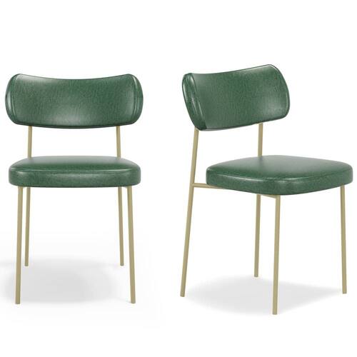 Conjuto 2 Cadeiras Escritório Stela Champanhe Couríssimo Verde - Vallisa Decor