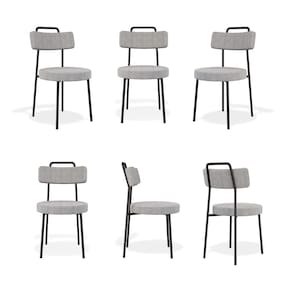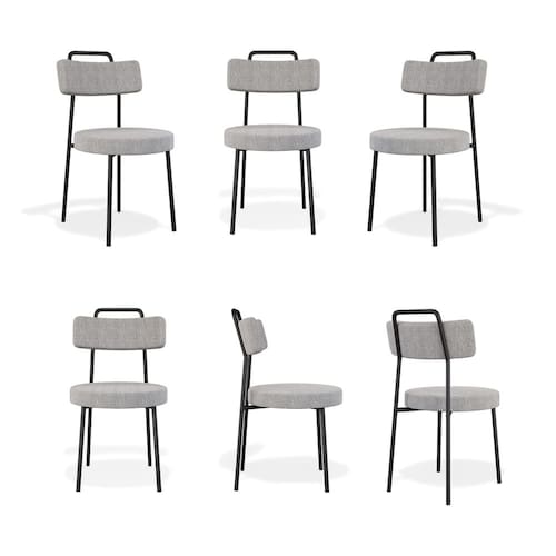 Conjuto 6 Cadeiras Escritório Ster Linho Cinza - Vallisa Decor - Cinza | Preto