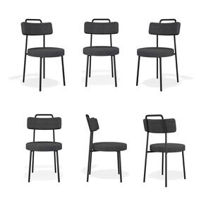 Conjuto 6 Cadeiras Fixa Ster Linho Grafite - Vallisa Decor