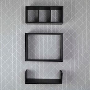 O Conjuto Kit 3 Nichos Prateleiras Decorativas Preta para Banheiro é a escolha perfeita para quem busca criatividade e organização de espaço no banheiro.